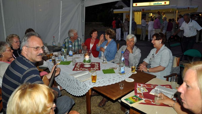 (gh) "Ist das Wetter wohl so, dass wir angenehm feiern können?" – das war in den letzten Tagen die am häufigsten von Sängerinnen und Sängern gestellte Frage. Und es war so! Es wurde ein äußerst gelungenes Fest auf diesem schönen "Fleckchen Erde" in Sennelager. Unter die zahlreichen Chormitglieder mischten sich viele neue Gesichter – der Vorstand mit Partnerinnen der Schützenbruderschaft Sennelager feierte kräftig mit und machte damit auch unserer Schützenkönigin Hildegard und ihrem Gefolge seine Aufwartung. Und man sprach davon, vielleicht auch im nächsten Jahre wieder mitzufeiern! Nach dem traditionellen "Einsingen" – dirigiert von Ellen – und der Begrüßung durch unsere erste Vorsitzende konnten das hervorragend ausgestattete Salatbüfett, Grillspezialitäten sowie der leckere rot-weiße Nachtisch genossen werden. Viele Chormitglieder hatten diese Köstlichkeiten hergestellt, damit anschließend auch einige flüssige Nahrungsmittel gut vertragen werden konnten. Auch unserem Chorleiter Alfons Puscher und seiner Ehefrau und Solistin Ilona gefiel es – wie allen – auf Jüden-Ranch. Hildegard Geppert überreichte Sängerin und Festwirtin Elisabeth Jüde einen Blumenstrauß und ein Präsent als Dank dafür, dass der Chor in jedem Jahre wieder diese Ranch zum Feiern nutzen darf. Ein herzliches DANKESCHÖN von der Vorsitzenden und auch an dieser Stelle an die vielen, vielen Helfer dieser Sommerfete mit allem Drum und Dran. Ohne zahlreiche helfende Hände wäre ein solches Fest nicht möglich. Natürlich wurde auch das letzte wunderbare Café-Konzert von Bad Lippspringe nochmals diskutiert. Nun beginnt die Sommerpause für die Sängerinnen und Sänger, um nach diesen Ferien am 24. August am ersten Probenabend bereits mit dem weihnachtlichen Programm zu beginnen. Über neue Interessierte würde sich die Chorgemeinschaft sehr freuen! Schauen Sie doch einfach mal herein, 24.08.2010, 20:00 Uhr, Probenraum in der Schützenhalle Sennelager. Singen ist etwas Wunderbares!